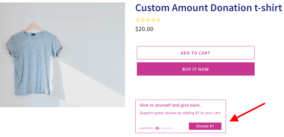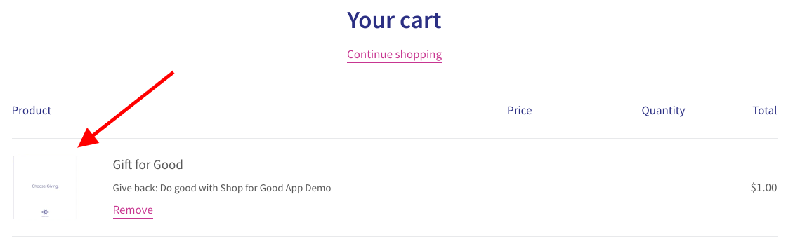 - Go to your Cart page. You should see the donation product in the Cart: